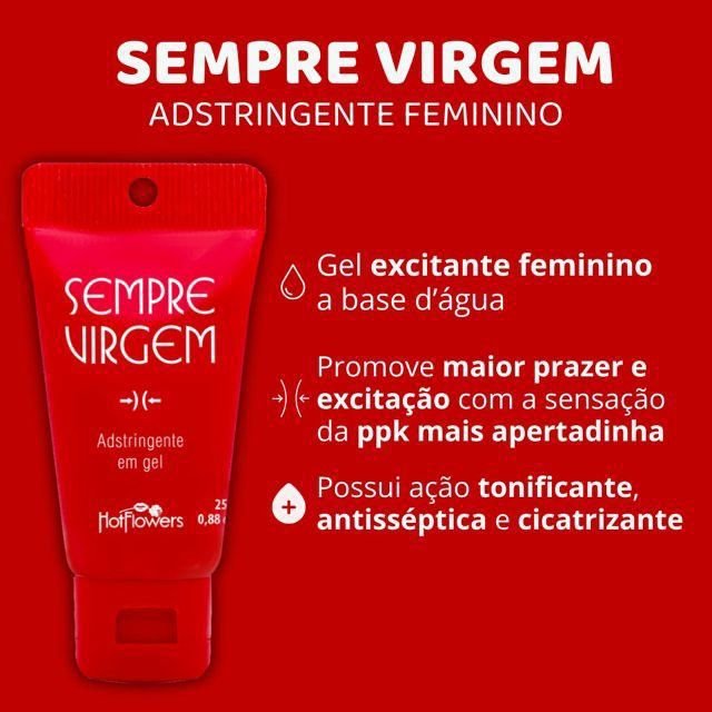 • Estreitamento Temporário: O Gel Adstringente Sempre Virgem contém ingredientes que podem criar a sensação de estreitamento do canal vaginal, semelhante à experiência da primeira vez.