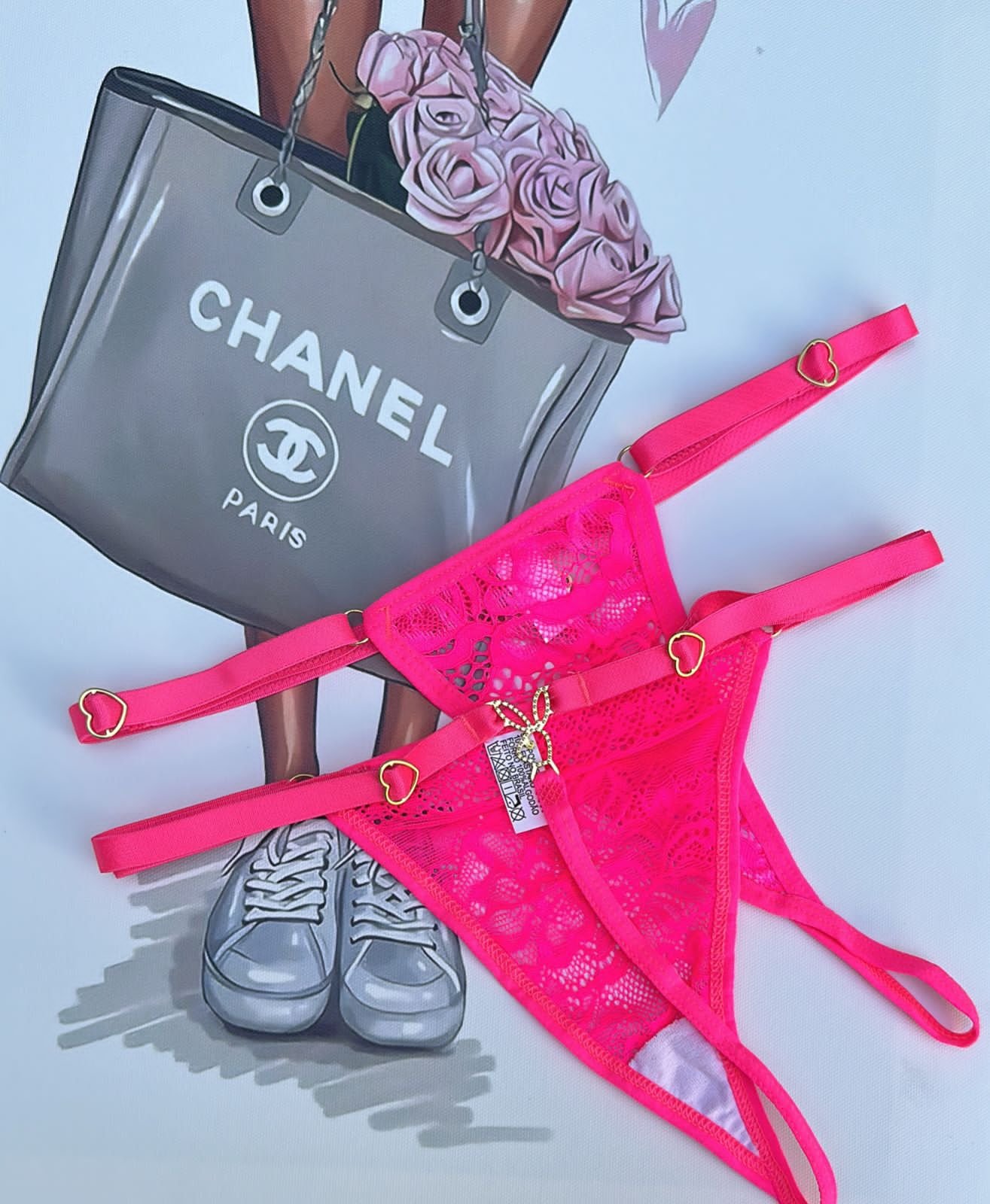 Calcinha de renda fio dental com um lindo detalhe coelho atrás.