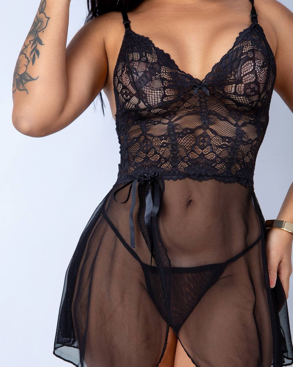 Ao colocá-la, você se sentirá mais linda do que já é, ela aumentará ainda mais a sua autoestima e reacenderá o fogo do seu relacionamento. Acompanha a sensualidade com a camisola de renda e tule e uma calcinha sexy para deixar suas noites irresistiveis