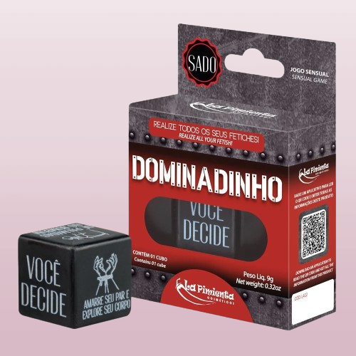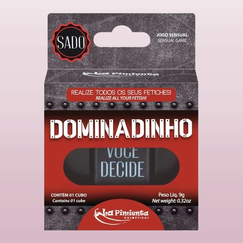Com o Dominadinho é um cubo para brincadeiras sensuais destinado a quem gosta de se aventurar no mundo BDSM. Primeiramente escolha quem será o dominador e quem será o submisso, jogo e dado e realize a ação sugerida, deixando seu momento a dois mais excitante e com muito mais emoção.