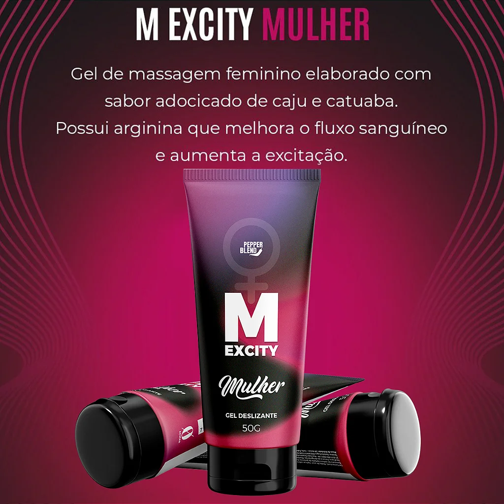 M Excity lubrificante feminino é um dos lançamentos da Pepper Blend que promete tornar uma simples massagem em um momento empolgante e perfeito para aprofundar a intimidade do casal.