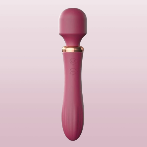 Dupla estimulação, sendo em uma ponta um luxuoso vibrador ponto G e na outra ponta um potente massageador corporal.